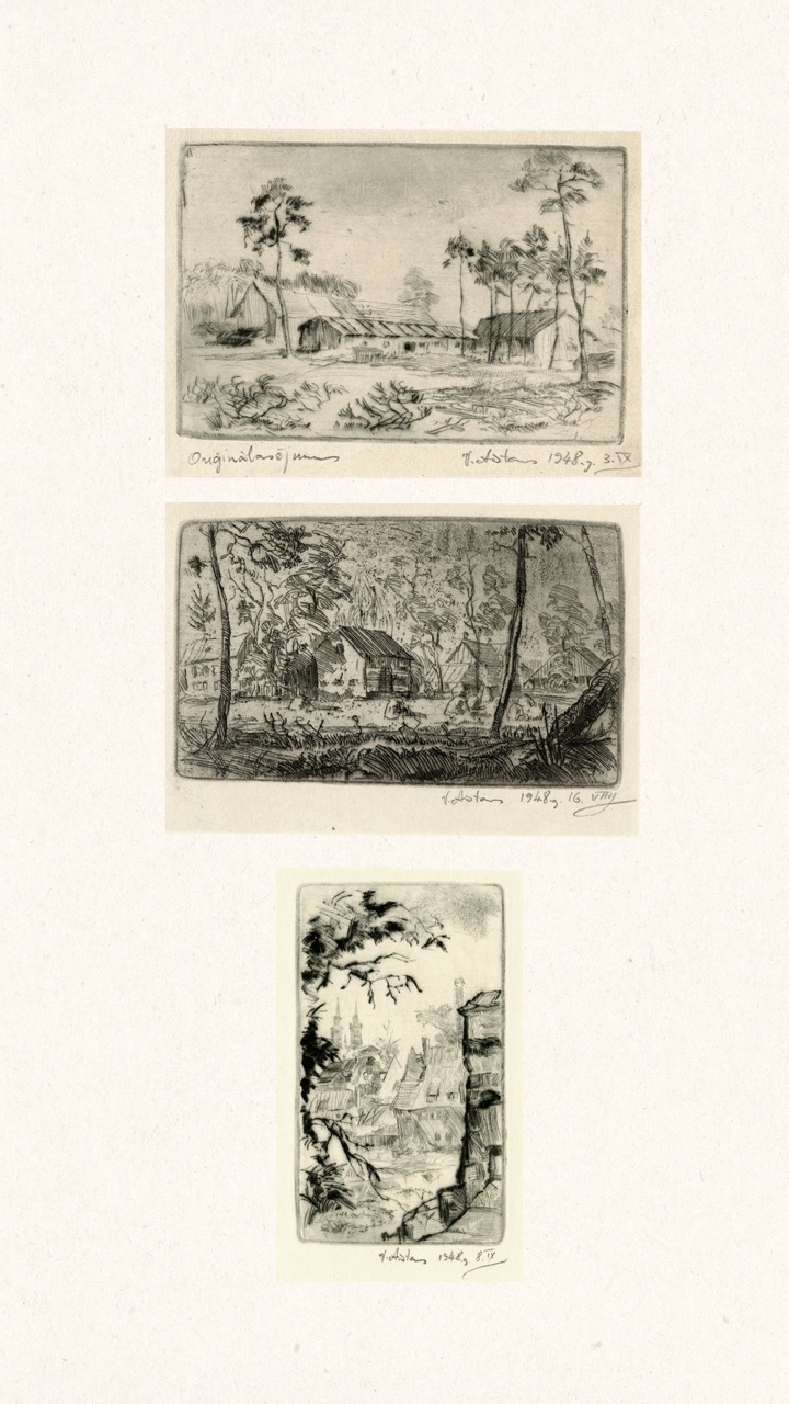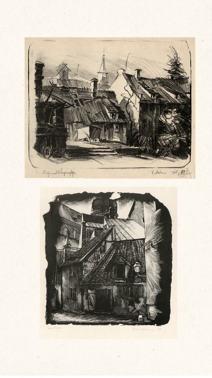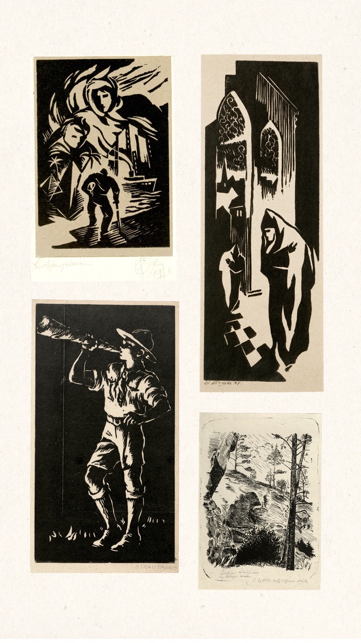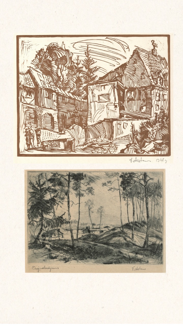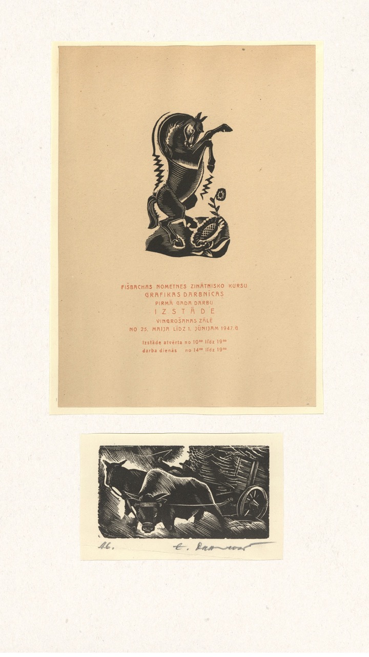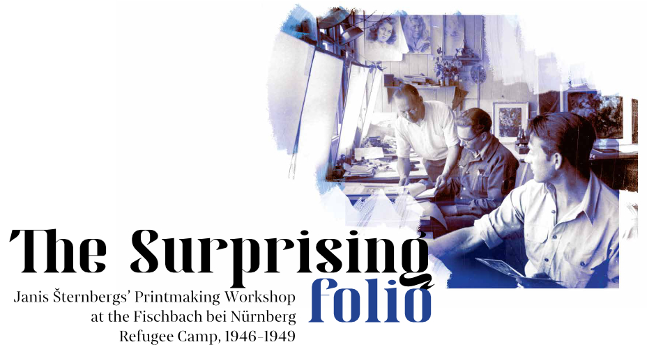 In the summer of 1949, Janis Šternbergs accepted a teaching position at the University of Kentucky, resulting in the closure of his printmaking workshop. The refugee camp administration had planned to publish the already compiled collection of the students’ original artwork, but publication was delayed and Šternbergs left war-torn Europe for America with the folio in his baggage. The folio travelled to Kentucky, then Texas, Michigan and Massachusetts until, nearly 70 years later, it was donated to the Latvians Abroad Museum and Research Centre in Rīga.