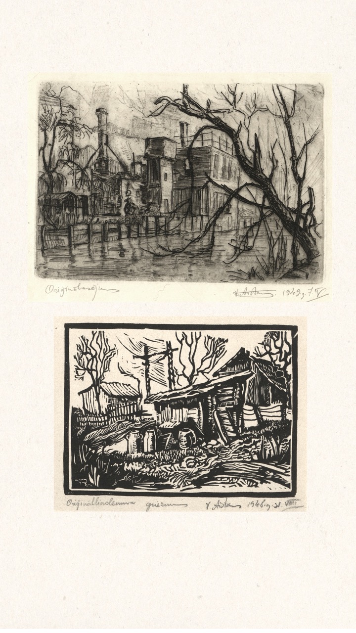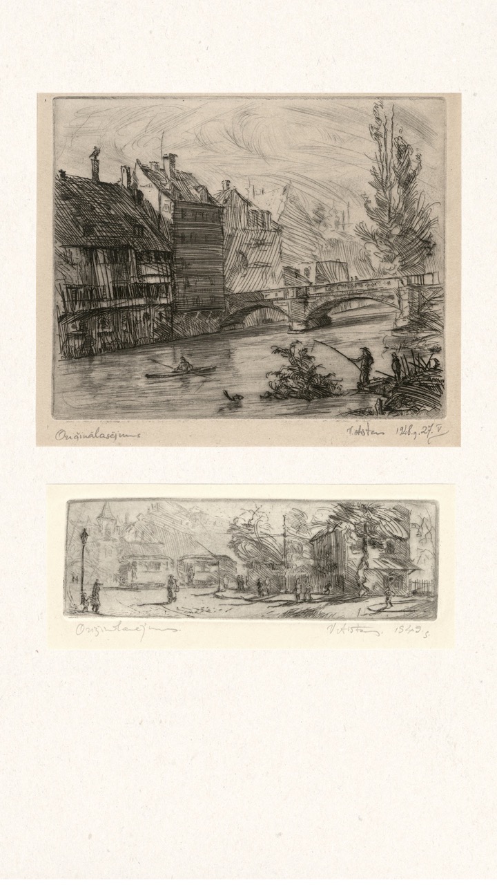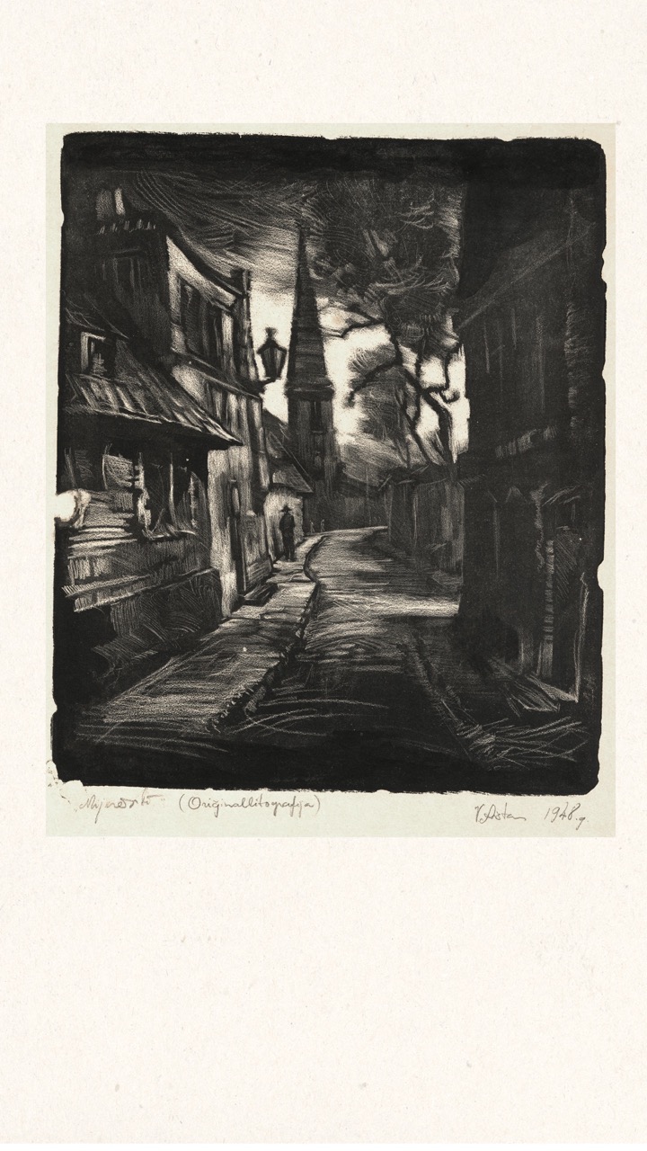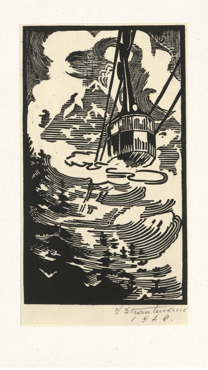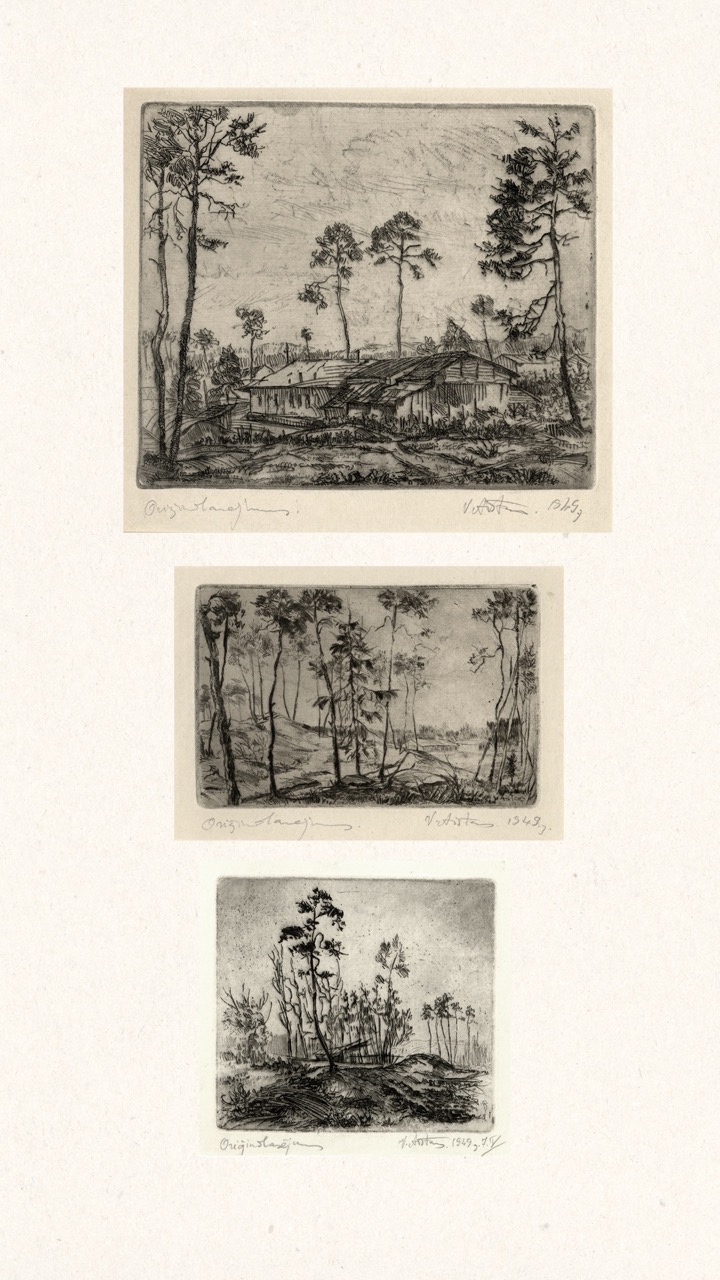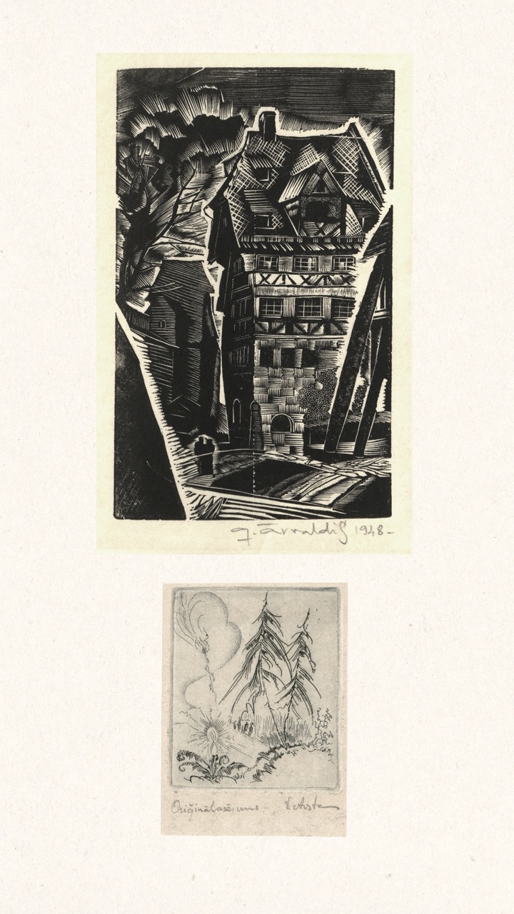 In the summer of 1949, Janis Šternbergs accepted a teaching position at the University of Kentucky, resulting in the closure of his printmaking workshop. The refugee camp administration had planned to publish the already compiled collection of the students’ original artwork, but publication was delayed and Šternbergs left war-torn Europe for America with the folio in his baggage. The folio travelled to Kentucky, then Texas, Michigan and Massachusetts until, nearly 70 years later, it was donated to the Latvians Abroad Museum and Research Centre in Rīga.