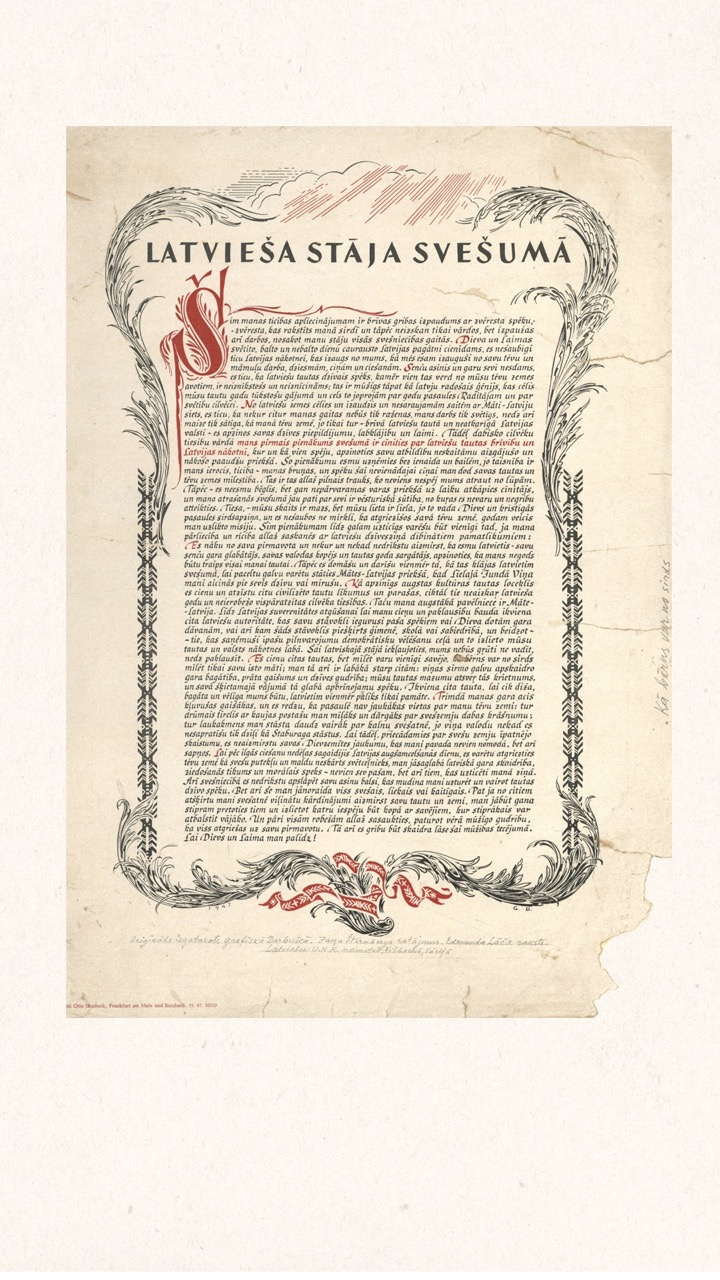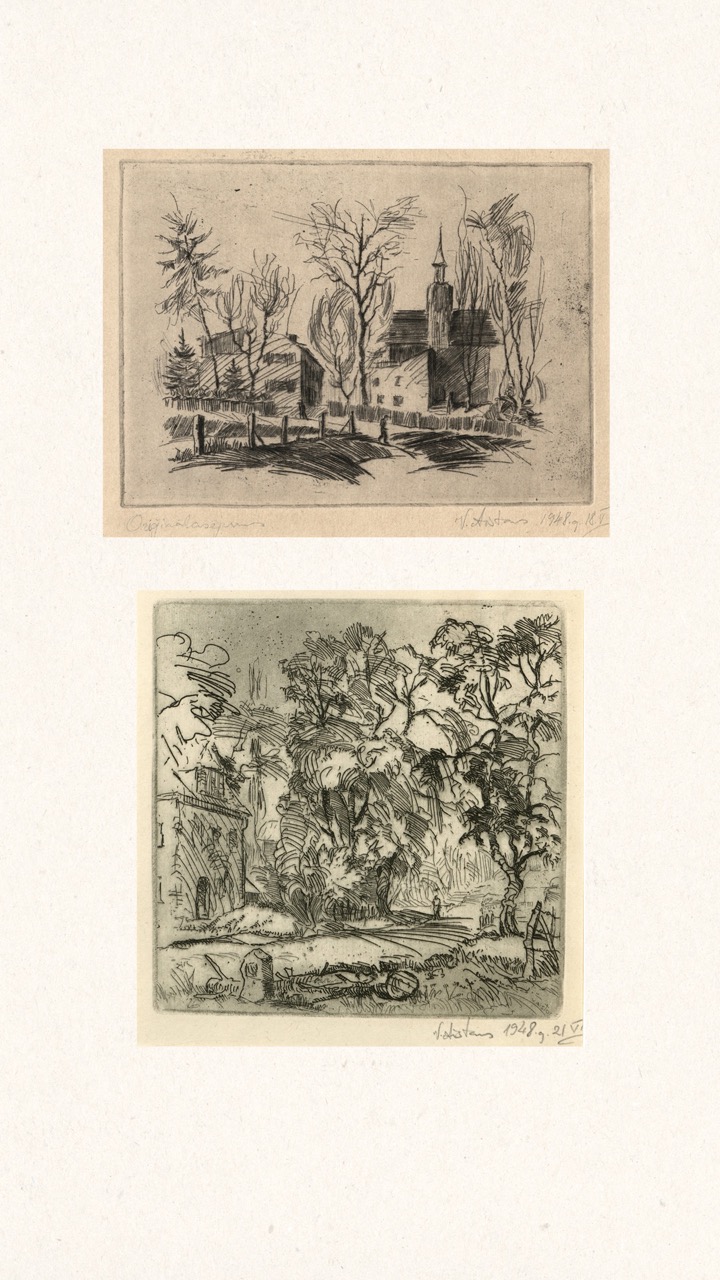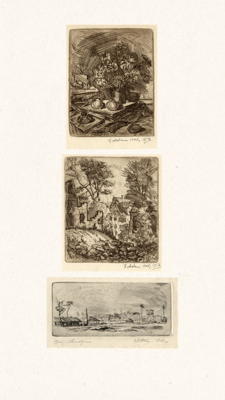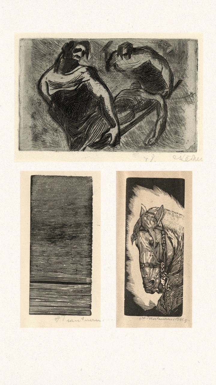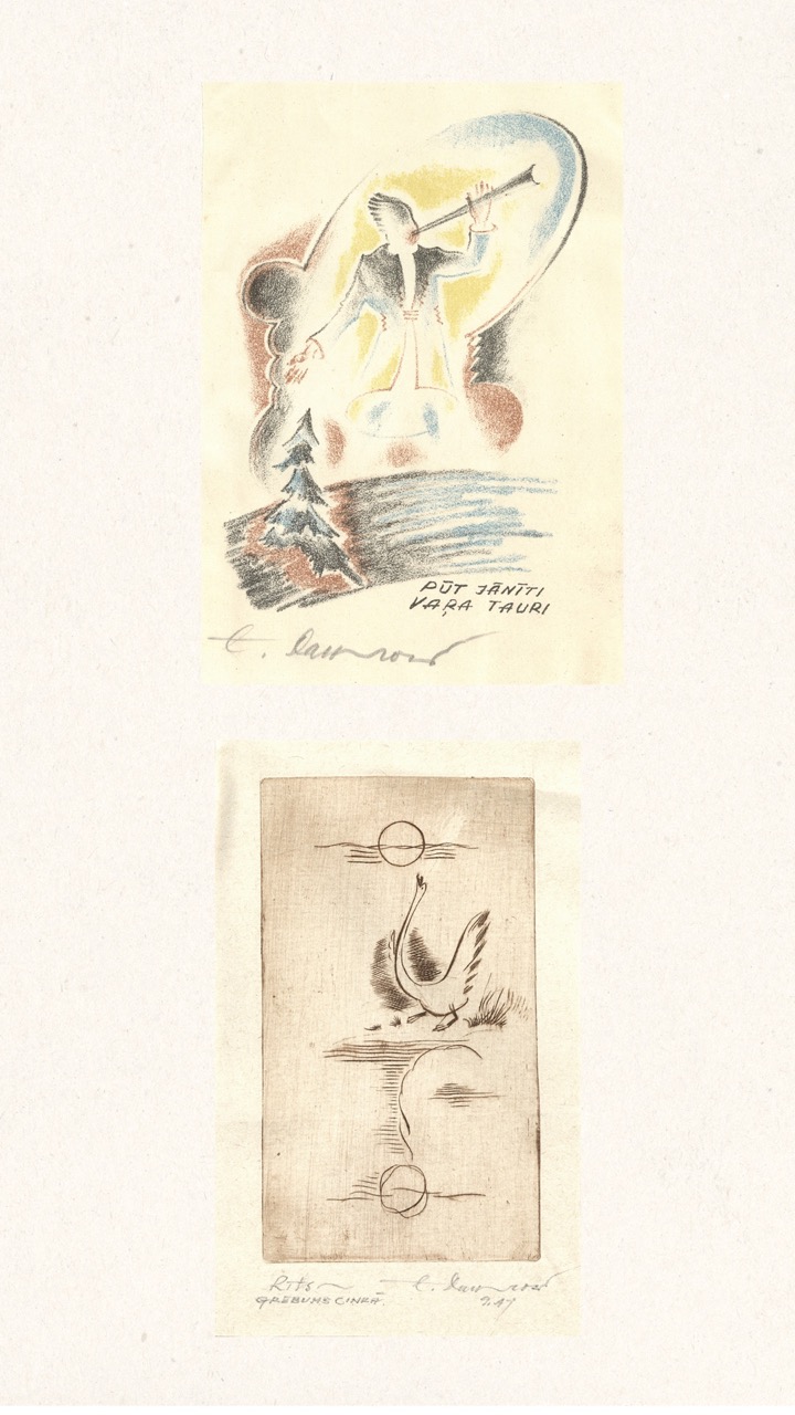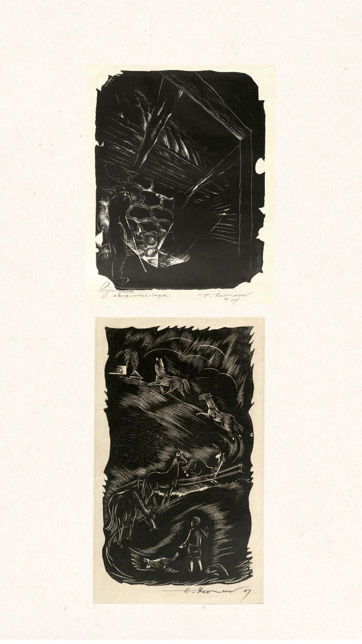 In the summer of 1949, Janis Šternbergs accepted a teaching position at the University of Kentucky, resulting in the closure of his printmaking workshop. The refugee camp administration had planned to publish the already compiled collection of the students’ original artwork, but publication was delayed and Šternbergs left war-torn Europe for America with the folio in his baggage. The folio travelled to Kentucky, then Texas, Michigan and Massachusetts until, nearly 70 years later, it was donated to the Latvians Abroad Museum and Research Centre in Rīga.