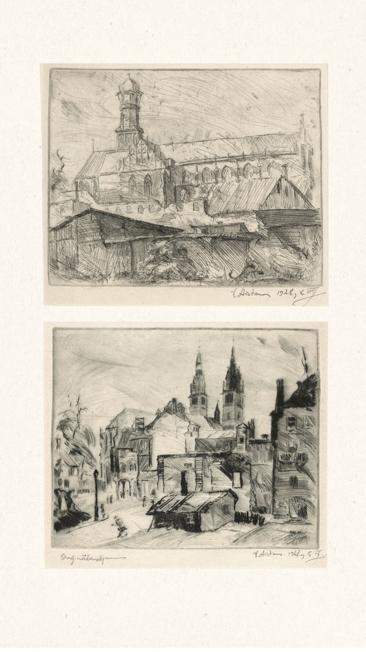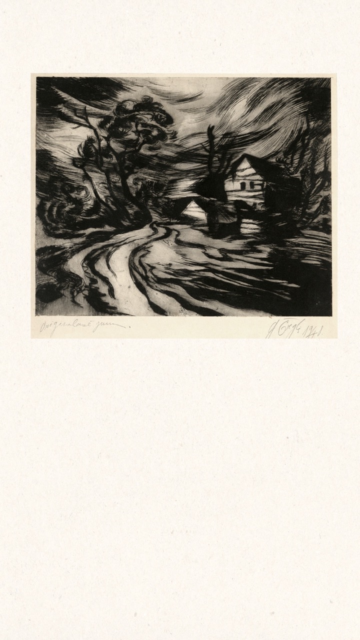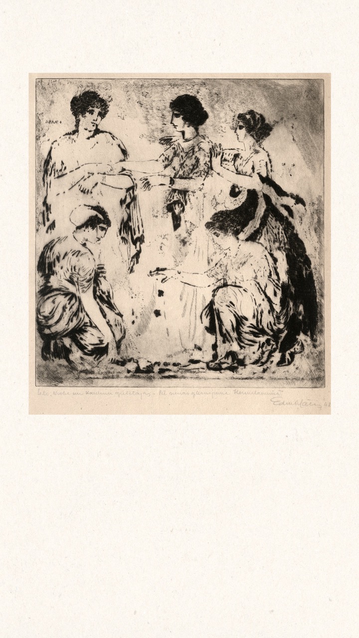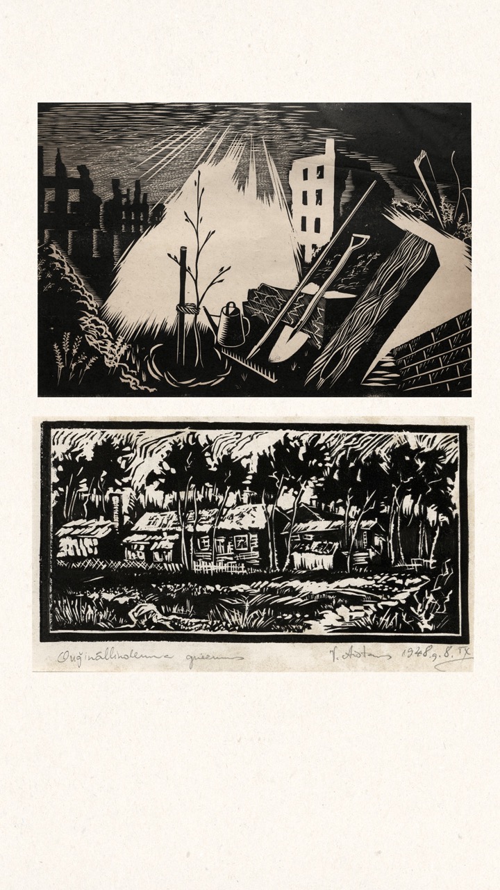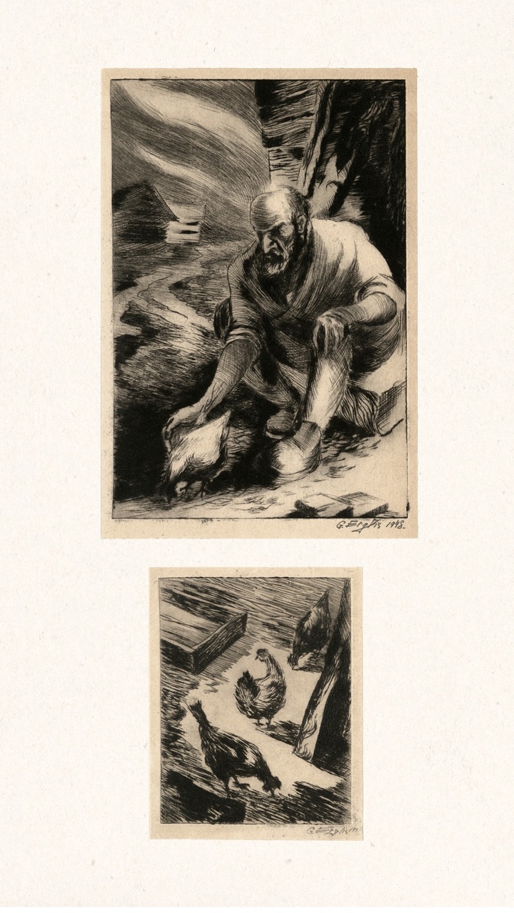 In the summer of 1949, Janis Šternbergs accepted a teaching position at the University of Kentucky, resulting in the closure of his printmaking workshop. The refugee camp administration had planned to publish the already compiled collection of the students’ original artwork, but publication was delayed and Šternbergs left war-torn Europe for America with the folio in his baggage. The folio travelled to Kentucky, then Texas, Michigan and Massachusetts until, nearly 70 years later, it was donated to the Latvians Abroad Museum and Research Centre in Rīga.