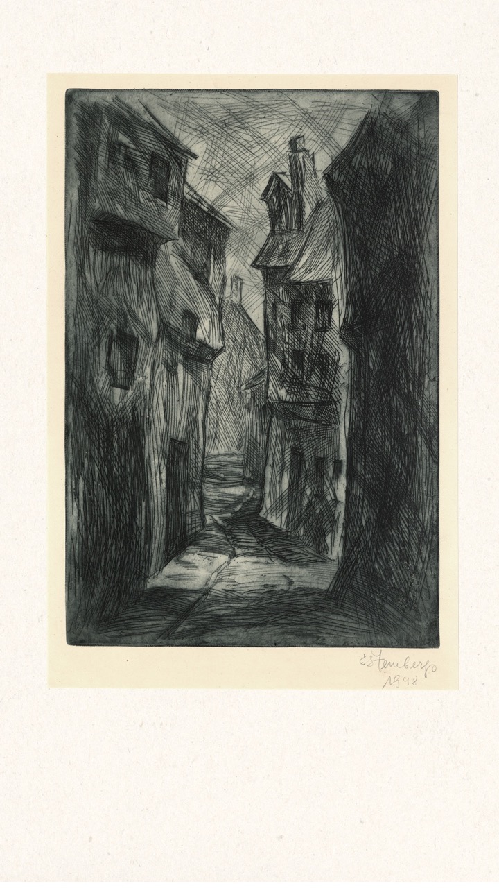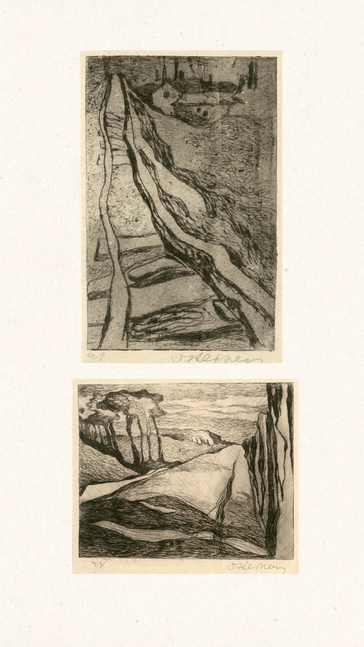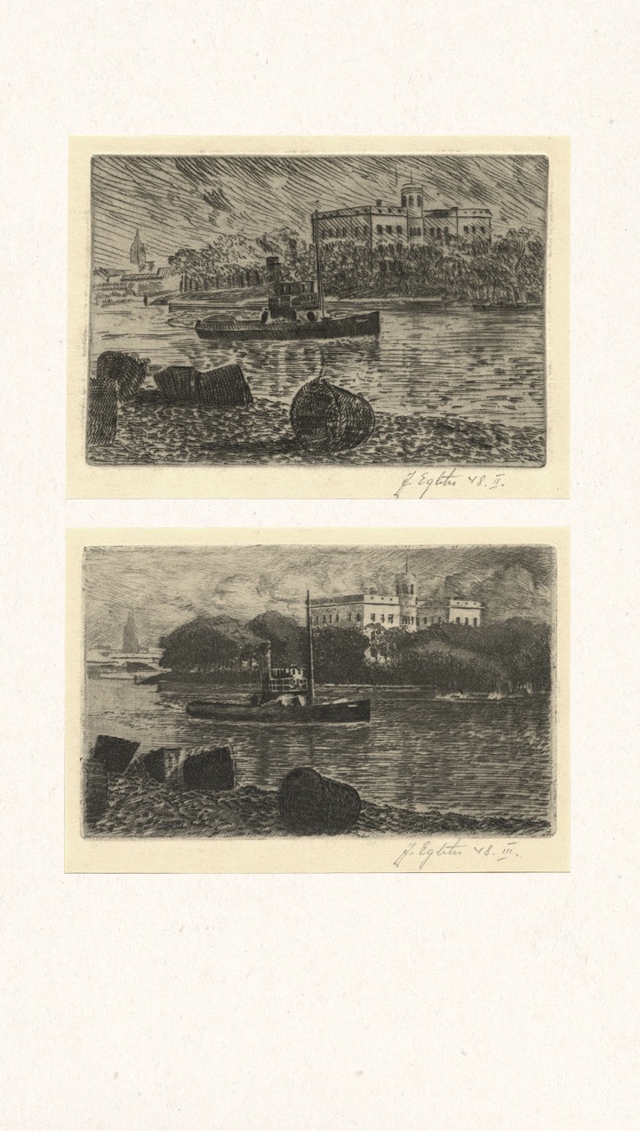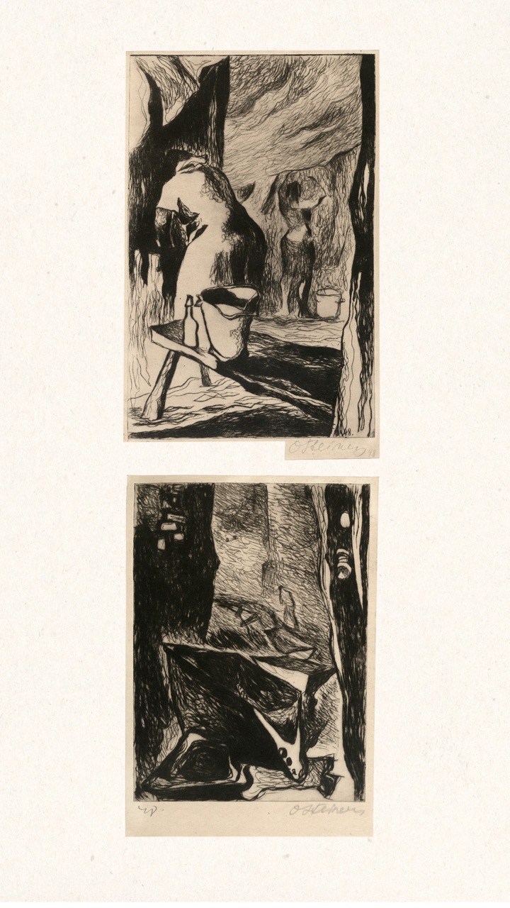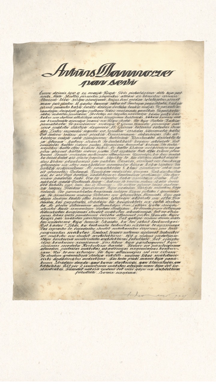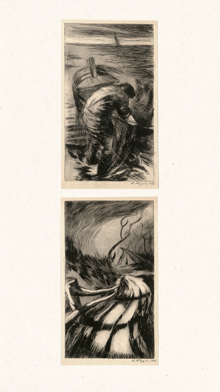 In the summer of 1949, Janis Šternbergs accepted a teaching position at the University of Kentucky, resulting in the closure of his printmaking workshop. The refugee camp administration had planned to publish the already compiled collection of the students’ original artwork, but publication was delayed and Šternbergs left war-torn Europe for America with the folio in his baggage. The folio travelled to Kentucky, then Texas, Michigan and Massachusetts until, nearly 70 years later, it was donated to the Latvians Abroad Museum and Research Centre in Rīga.
