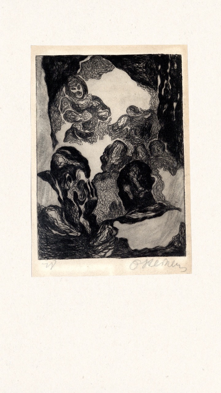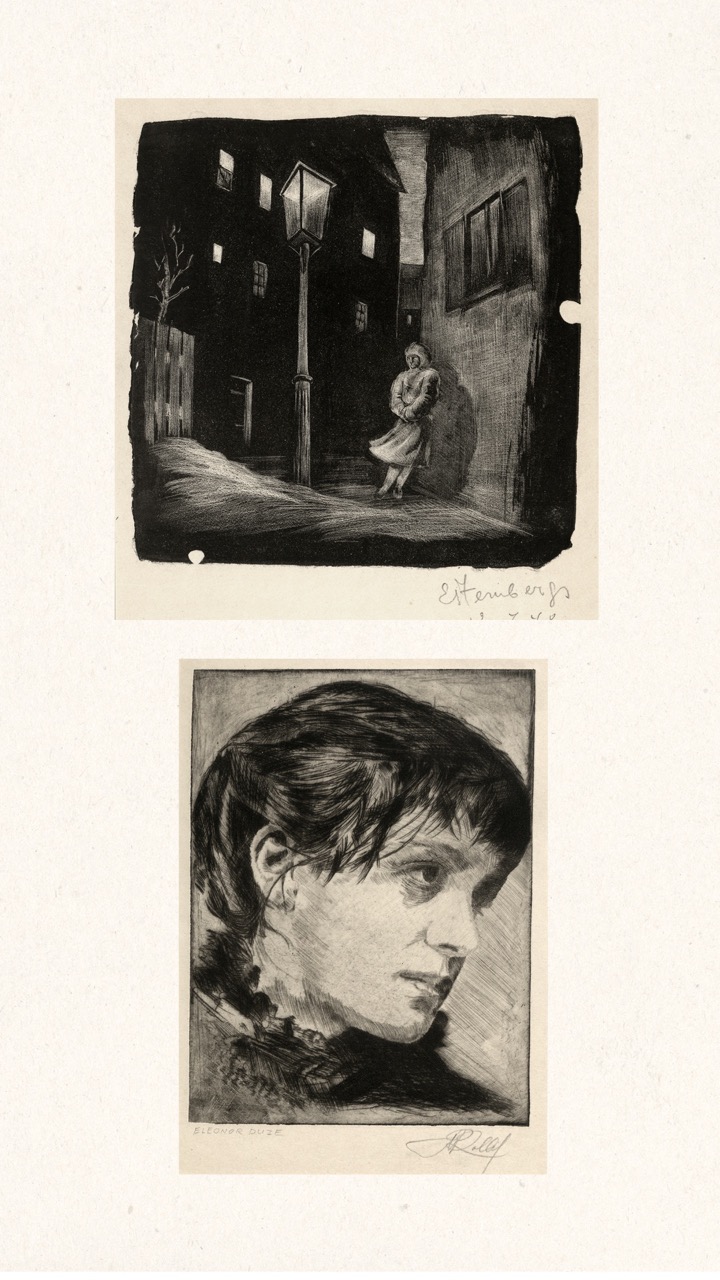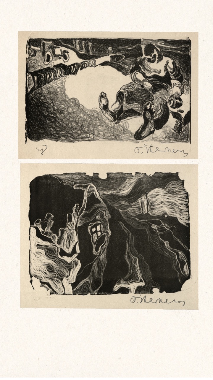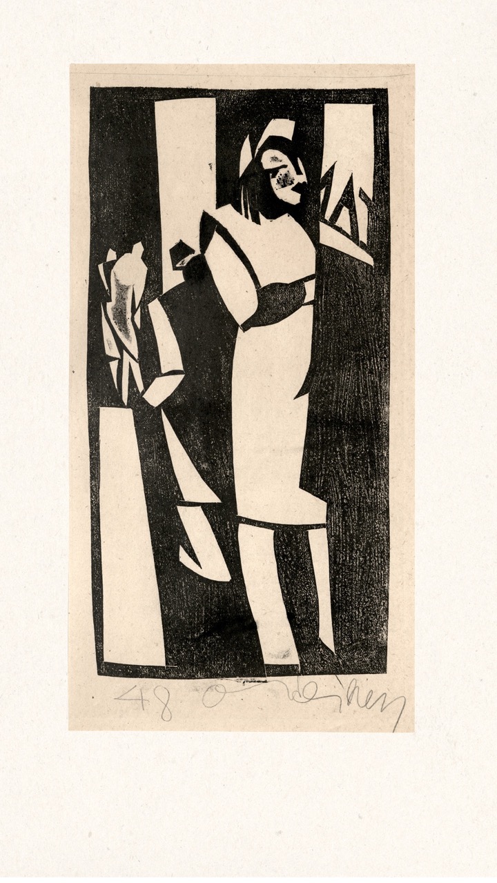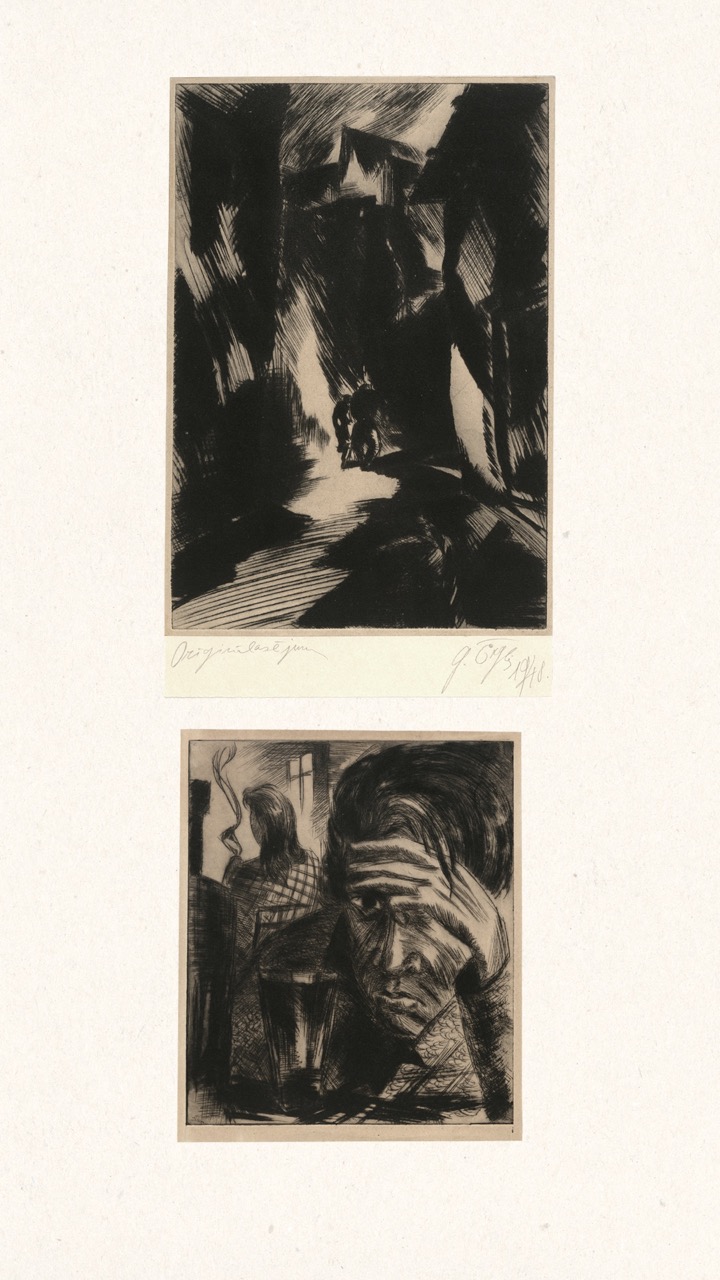 Never published, this folio is now being exhibited for the first time – a “book opening” of sorts, an opportunity for the public to finally see this extraordinary collection of graphic art from a tumultuous time. The folio, along with supplemental material, opens a view into an era of dramatic change in Europe through the eyes of a handful of young Latvian artists in exile. We can only marvel at how – during three years after the end of World War II, in temporary wooden structures of a refugee camp outside of Nürnberg, but under the tutelage of a dedicated teacher – students including Viestarts Aistars, Arturs Damroze, Ojārs Šteiners, and Gastons Ērglis created this lasting diverse and powerful visual message.